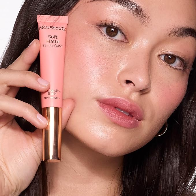 MCoBeauty Soft Matte Beauty Wand, Peach Bellini Blush, Velvety Finish of Buildable Color, Vegan, Cruelty Free Cosmetics