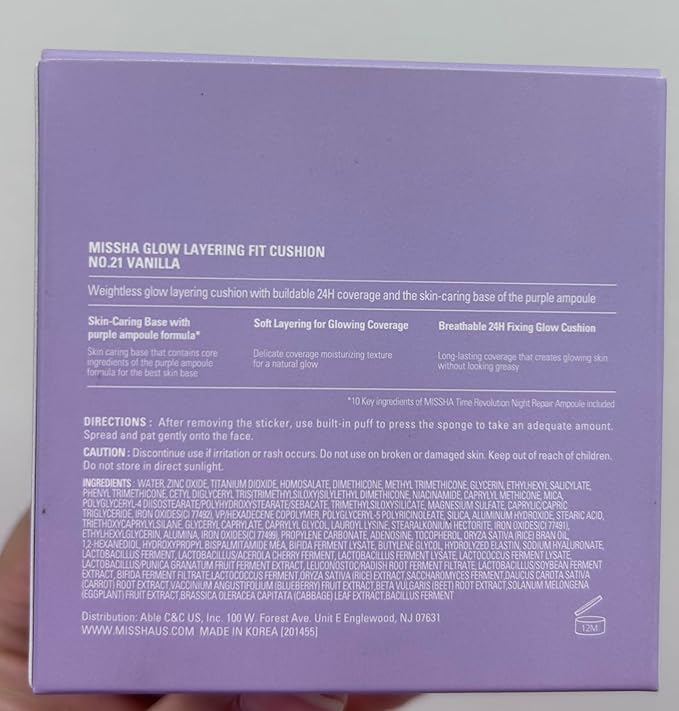 MISSHA Serum Cushion Glow Layering Fit Cushion Foundation No.21 Vanilla Light Beige for Bright Skin, Korean Foundation Makeup, Rich-Texture, Full-Coverage, 24-Hr Hydrating, Triple Glow System