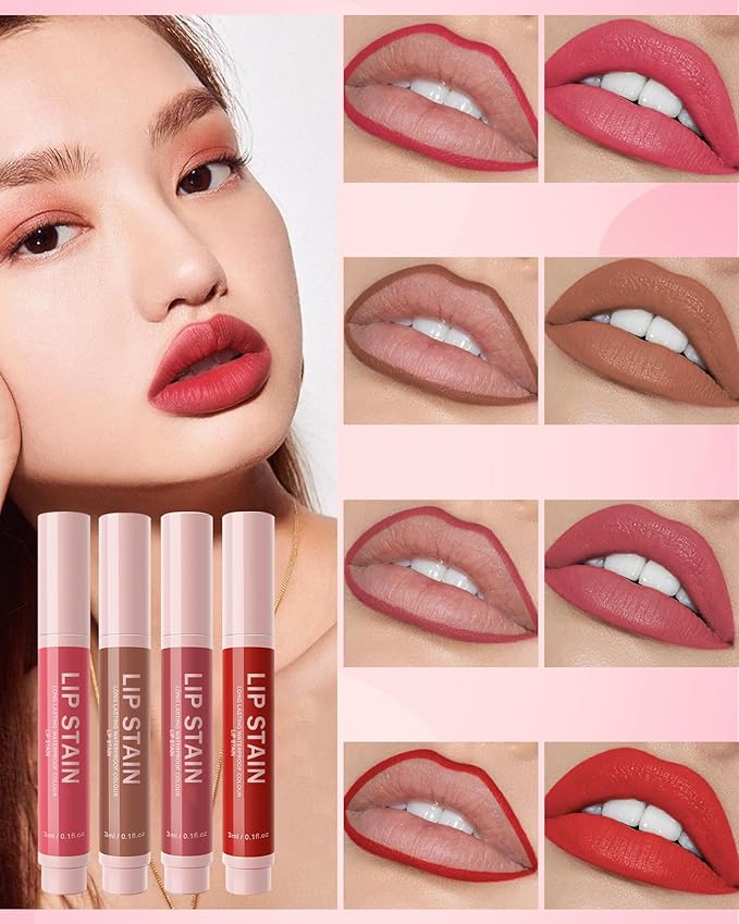 - MATTE LIP STAIN PEN - This lip liner with 4 colors to available, it is highly pigmented, smooth in texture, cruelty-free, and can be used not only as lip liner, but also as lip stain and lipstick. Extremely easy to apply, and the rich colors give a matte finish for a glamorous lip look!