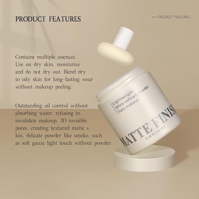 - ✨【Oil Control & Long Lasting】 An easy-to-use matte loose powder to create a long-lasting complexion, blur the appearance of pores and fine lines, and hold makeup in place all day long. The loose-setting powder helps to absorb excess oils, creating a refreshing makeup effect, waterproof, and sweatproof, with up to 16 hours of wear. This loose setting powder ensures you’re always insta-ready by subtly blurring fine lines, pores, and blemishes for a radiant complexion.