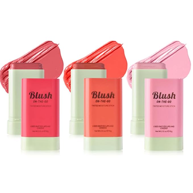 - Fit for All Skin Tones: The cream blush stick organic has 3 nice colors as follow: shy pink, hot red and coral orange. It is suitable for all skin tones and gives your face shine and pigmented.