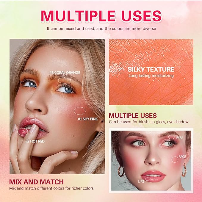 - 【Multifunctional Lipstick Blush Stick】: This versatile, multi-use stick works overtime as an eyeshadow, lipstick, and blush, delivering a gorgeous hint of colour wherever you want it.Delivering a gorgeous hint of color wherever you want it.