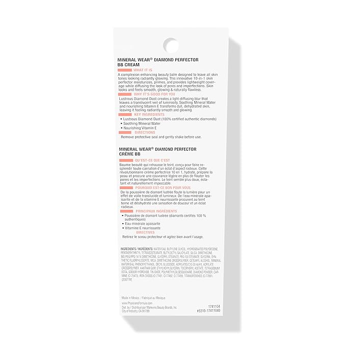 Physicians Formula Mineral Wear®Diamond Perfector BB Cream, 10 in 1 Skin Perfecting Beauty Balm, Lightweight & Luminous Finish - Light to Medium