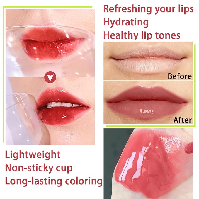 - 💋【Moisturizing Lip Gloss】The lip stain are rich in fruit extracts & vitamins with the hydrating and moisturizing effects to nourish dry lips, which color lips and form a moisture coat without drying lips.