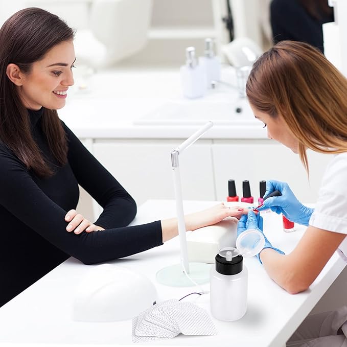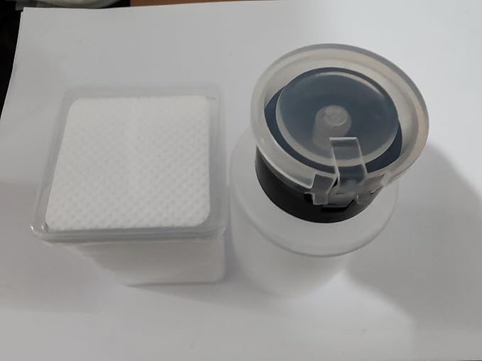 200 Pieces Nail Cotton Pads,1 Pull-Down Pump Dispenser Bottle, Super Absorbent Soft Non-Woven Eyelash Glue Wipes, Nail Polish dehumidifier for Eyelash Extension Products and Nail Oil Bottle (White)