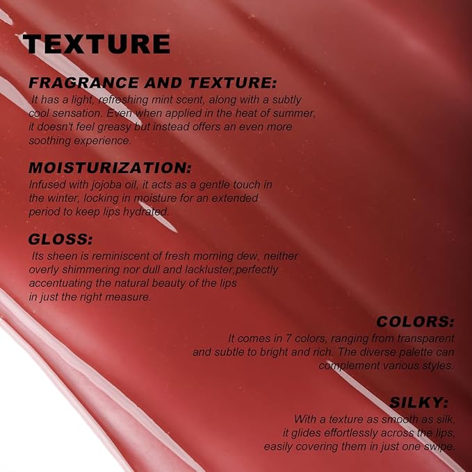 - Smooth Finish: Enjoy a glossy, non-sticky shine that feels light and comfortable, enhancing your lips with a radiant glow.