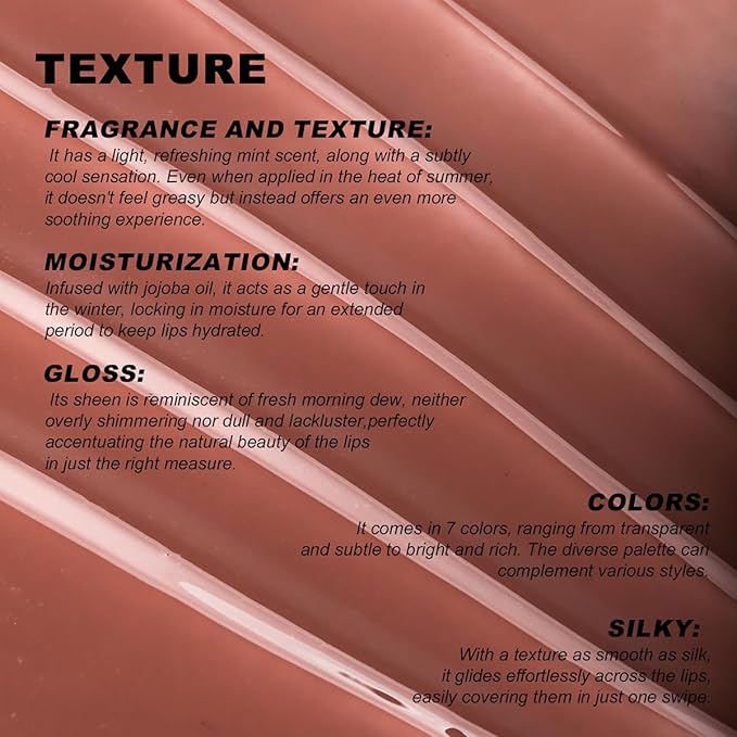 - Smooth Finish: Enjoy a glossy, non-sticky shine that feels light and comfortable, enhancing your lips with a radiant glow.