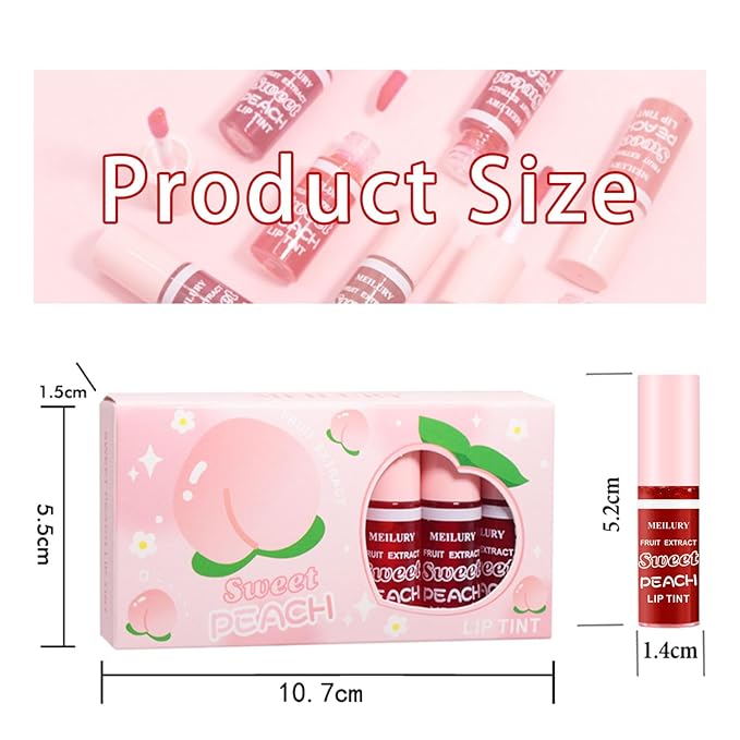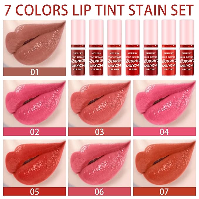 7 Colors Lip Stain Set, Watery Lip Tint Stain Mini Liquid Matte Lipstick, Multi-use Lip Cheek Tint, Moisturizing Plump Lip Gloss, Lightweight Non-Sticky, Long Lasting Vivid Lip Tint Makeup (Peach)