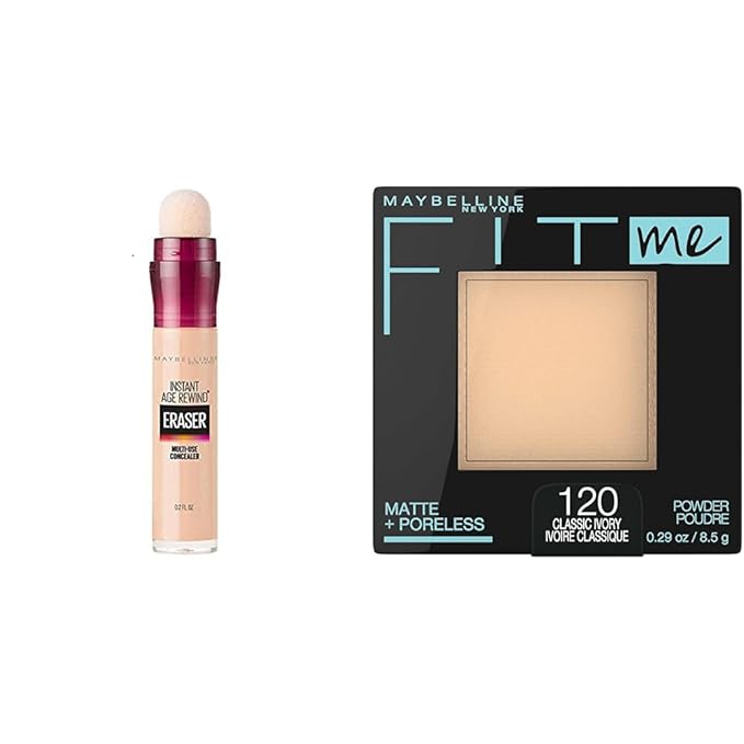 Maybelline Instant Age Rewind Eraser Dark Circles Treatment Multi-Use Concealer, 115, 1 Count & Fit Me Matte + Poreless Pressed Face Powder Makeup & Setting Powder, Classic Ivory, 1 Count