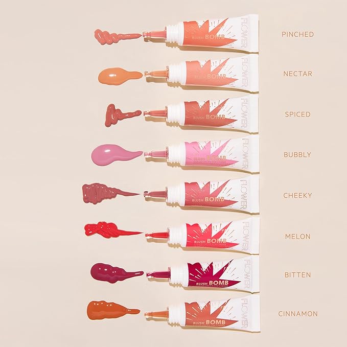 FLOWER Beauty By Drew Barrymore Liquid Blush Makeup Bomb Color Drops -Silky Lightweight Formula + Gel Cream Blush for Cheeks - Radiant + Glossy Finish - Buildable + Lightweight Formula - Cruelty-Free + Vegan (Spiced)