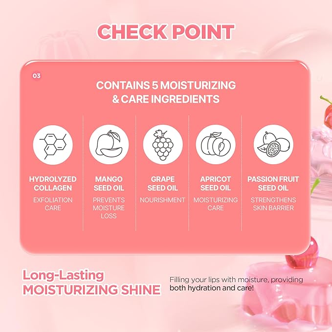 - [π± π π’ππ¦π§π¨π₯ππππ‘π ππ‘ππ₯πππππ‘π§π¦ ππ’π₯ ππππ£ πππ£ πππ₯π] Packed with hydrating heroes: Hydrolyzed Collagen, Mango Seed Oil, Grape Seed Oil, Apricot Seed Oil, and Passion Fruit Seed Oil for smooth, nourished, and flake-free lips.