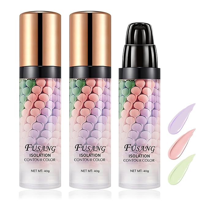 2PCS One Step Color Corrector Isolation Cream,Tri-Color Moisturizing Concealer Makeup Primer,Tinted Moisturizer Long Lasting Color Correcting Facial Serum Foundation for Flawless Makeup