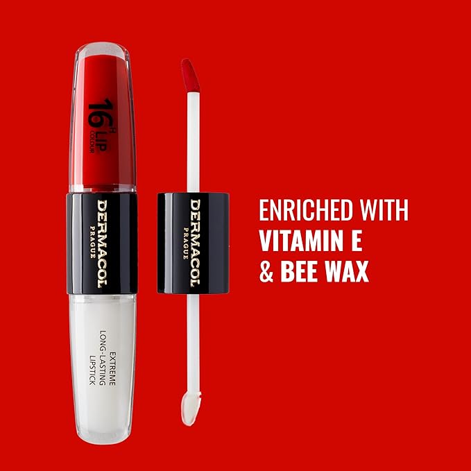 Dermacol NEW 16-Hour Lip Colour, Highly Pigmented Glossy Lip Stain, Two-Phase Lip Plumper Gloss, Kissproof Lip Makeup Products with Matte and Glitter Finish, n.4