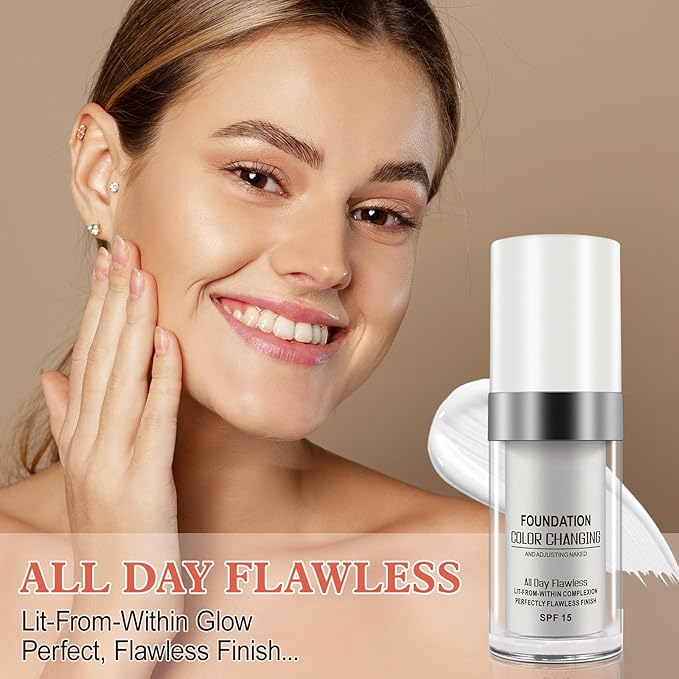 - 【Match Your Exact Skin Tone】Flawlessly colour changing foundation is a revolutionary new liquid foundation that goes on white and instantly self-adjusts to match dull faces tone,exact skin tone,natural looking color in your perfect shade