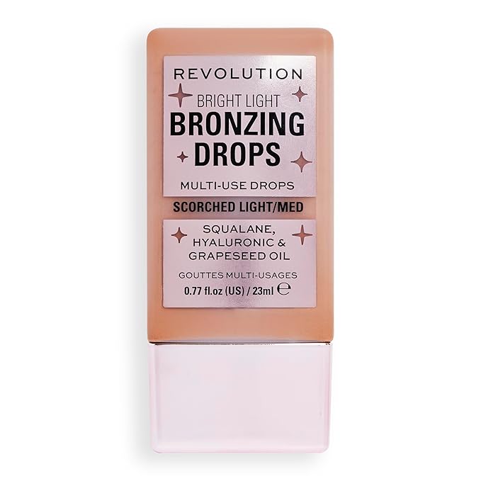 - RADIANT COMPLEXION & GLOW: Bronze and glow your own way with the Revolution Bright Light bronzing drops. The illuminating formula soothes & softens skin whilst giving your face, body, legs, chest or hands a sun-kissed glow without the damage