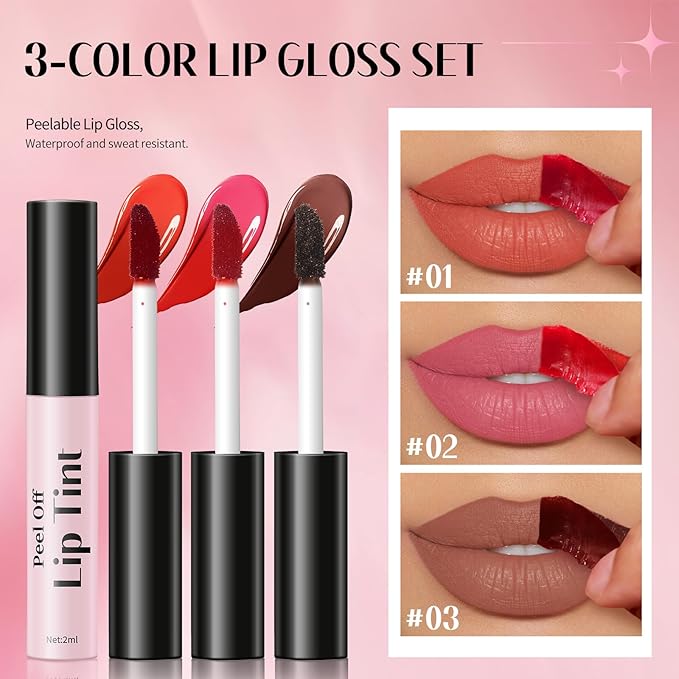 - 【3 Colors Peel Off Lip Stain Set】This is a new peel off lip stain set with easy application, fast drying and easy peeling. You can choose the colour you want and when you peel it off, you get a naturally and beautiful colour on your lips