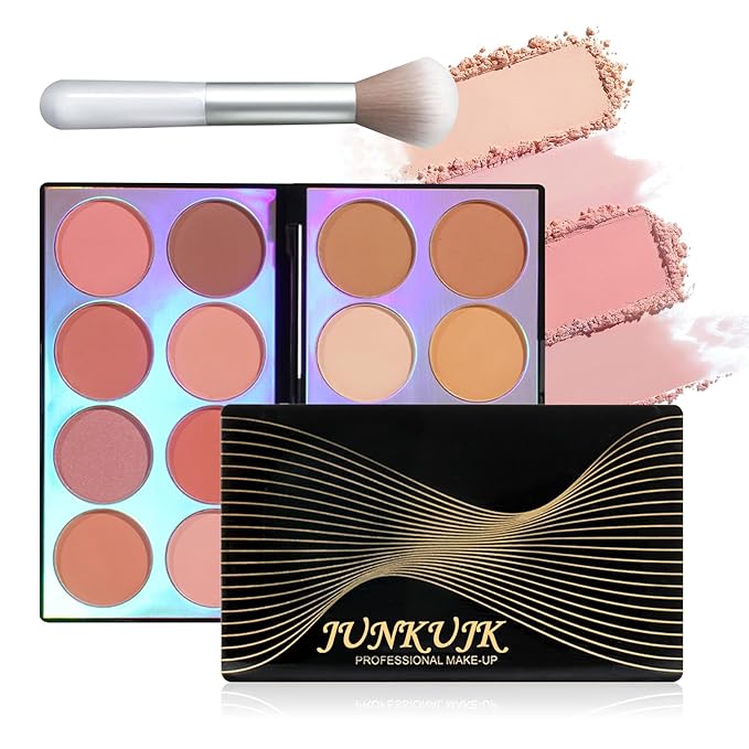 Blush Palette,Shimmer Silky Matte Blush Powder Palette,Professional Cute Face Contour Highlighter Blush Palette with Blush Makeup Brush 01