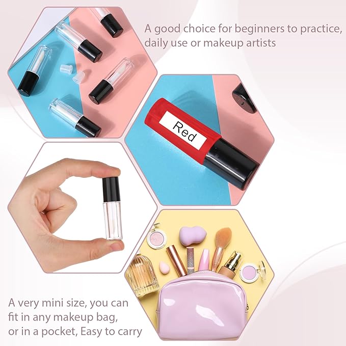 - 【Portable and Travel-Friendly】The lip gloss tube is only 1.2ml and measures 5×1.3×1.3cm, the compact size of these lip gloss containers makes them ideal for taking on the go. Throw them in your purse, pocket, or makeup bag and have your favorite lip gloss ready when you need it.