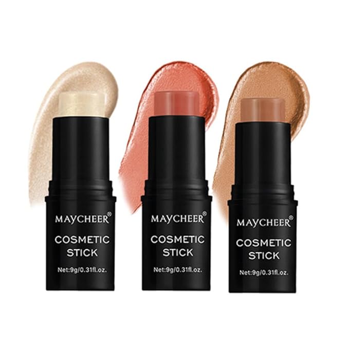 - Complete Contour Set: The cream contour stick set have 3 shades included highlighter, blush and contour. Use it helps you create a natural and healthy looking.