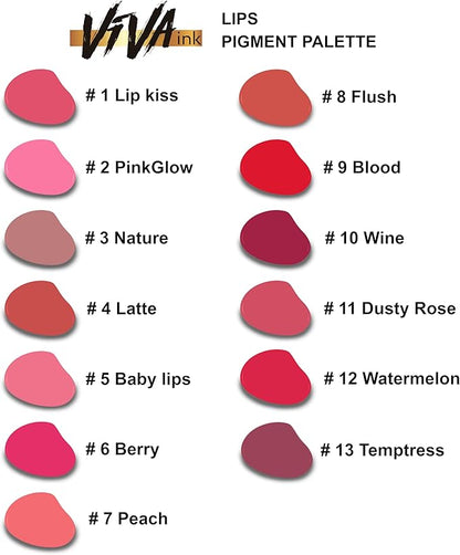 - LONG LASTING EFFECT: Our lip pigment for permanent makeup maintains its true color after healing and retains up to 90% of its original vibrancy. VIVA INK pigment for microblading achieves a remarkable natural appearance.