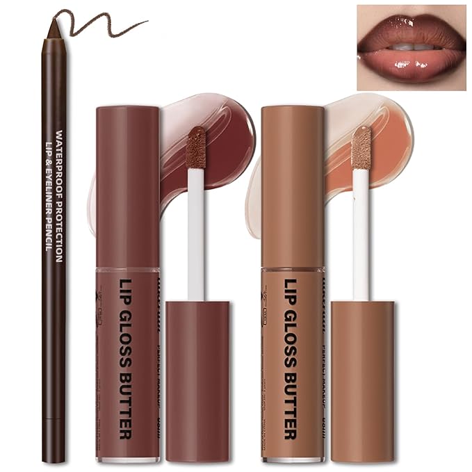 - Glossy Lip Combo: This lip oil combo creates plump and moisturized lips. Pair the brown lip liner with a different color lip gloss for a different lip look. The lip liner is used to create a stunning lip line while the lip gloss gives a gorgeous color to the lips.