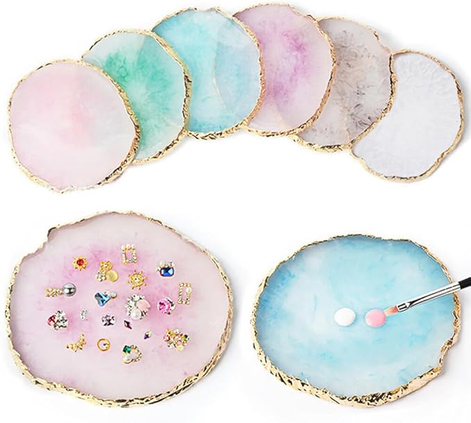 - ♞ Design: Our resin nail art palette features an agate stone style and round shape with gold outlined edges, uneven edges, chic and colorful, noble and elegant, with a very exquisite design.