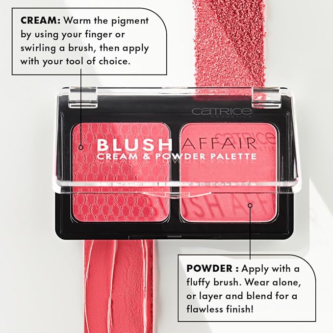 - DOUBLE THE FUN: Meet your new blush obsession: the Catrice Blush Affair Cream & Powder Palette. Featuring a creamy blush and a velvety powder, you can mix, match, and layer for endless looks!