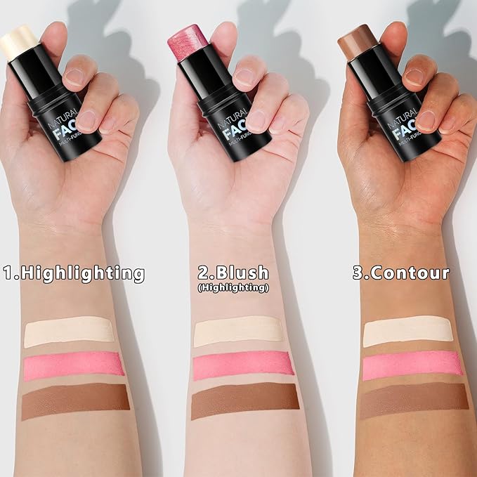- 【Contour Stick Makeup Kit】This trio contour stick makeup kit has shades that include blush, bronzer contour and highlighter. This kit is easy to sculpt your face and add a warm, healthy, glowing natural look complexion to your skin.