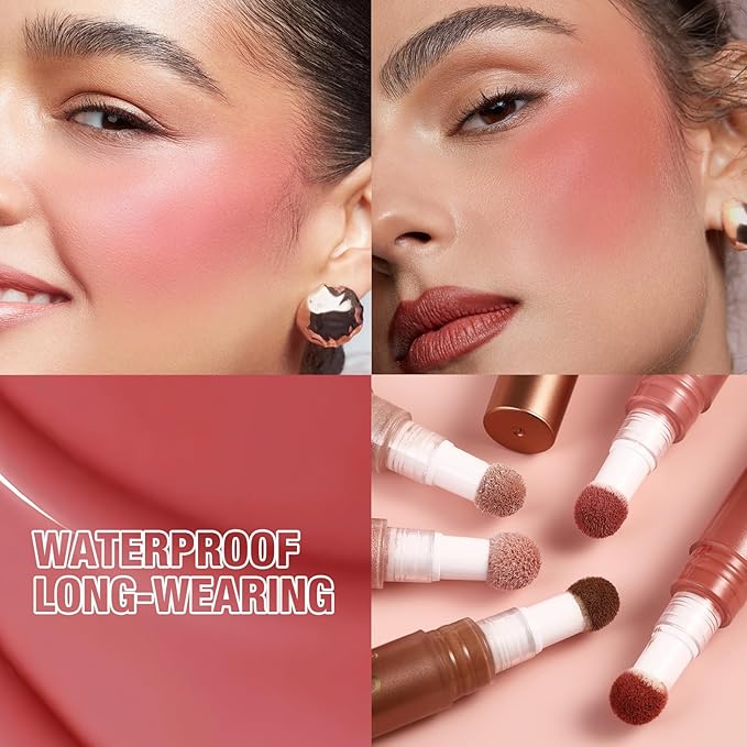 - Easy to use blush stick- 1.Open the lid 2.Twist the bottom clockwise, after that the liquid blush will appear on the applicator, then you can apply makeup directly. NOTE: Be sure not to twist the lid before opening it, otherwise the sponge applicator will stick to the lid!