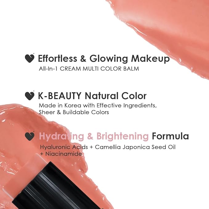 - MOISTURIZING K-BEAUTY BALM WITH HYALURONIC ACID : Infused with hydrating Hyaluronic Acid and Camellia Japonica Seed Oil, this multi balm helps hydrate the skin creating the glowing look.