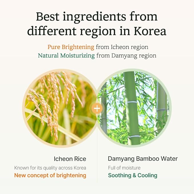 - [ONLY THE BEST INGREDIENTS] Korean Icheon rice for clear, spotless skin, and Damyang bamboo sap, rich in minerals, for an instant cooling effect. Each ingredient is harvested from the best regions in Korea, recognized by Koreans themselves