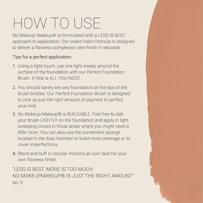 Foundation by No Makeup Makeup | Conceal & Correct with Long-Lasting, Buildable Formula & Lightweight Soft Finish | Cruelty-Free, Vegan, Fragrance-Free | Almond