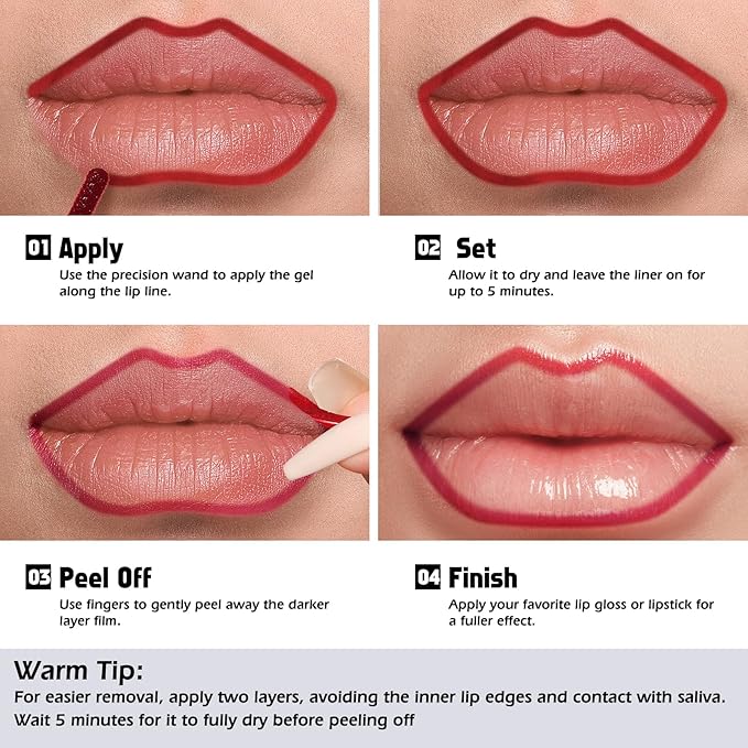 - EASY TO USE - Outline and fill in your lips with the lip stains. Wait for it to dry, then gently peel off for beautifully stained lips that last.suitable for various occasions and makeup looks, enabling you to effortlessly coordinate with different fashion styles.