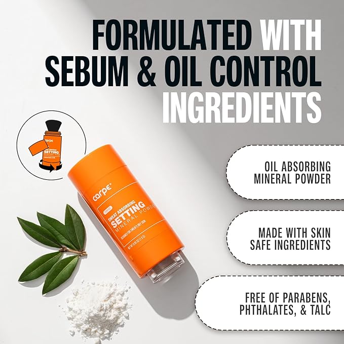 Carpe ~NEW~ Sweat Absorbing Translucent Mineral Powder - Mess-free Loose Powder Makeup That Controls Oil & Sweat Shine - Makeup Setting Powder For Oily Skin - Matte Finish Gentle on Skin
