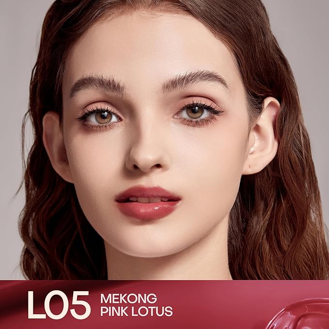 Mistine Lip Gloss Thai latte Long Lasting Lip Glaze Non-sticky Lip Tint Gloss with 1% Peptide Glossy Finish L05 Mekong Pink Lotus 0.1 fl oz 1 Count
