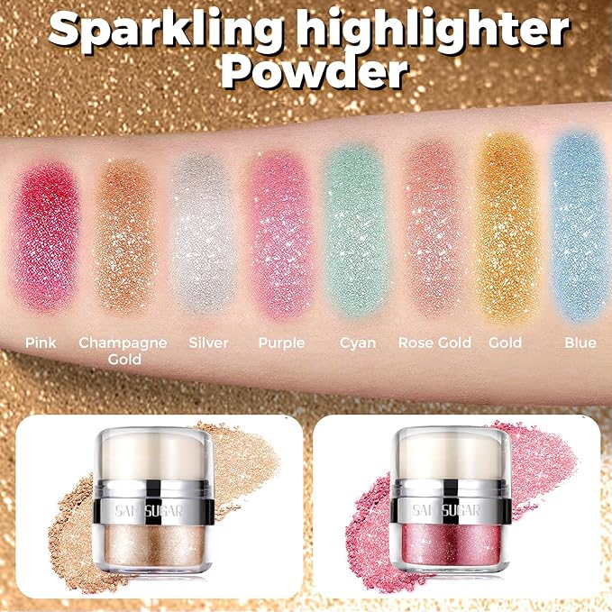 - Sparkling highlighter Powder:Achieve a luminous and radiant look with our body glow powder. Create a stunning shimmer effect on your body for a dazzling finish. Perfect for special occasions or everyday use.This shimmer powder will help you achieve a radiant and shimmering finish.