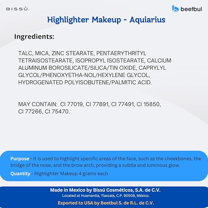 - Radiant Finish: Our Bissú Highlighter Makeup offers a silky, lightweight formula that enhances your skin's natural glow with light-reflecting pigments, ideal for a radiant complexion