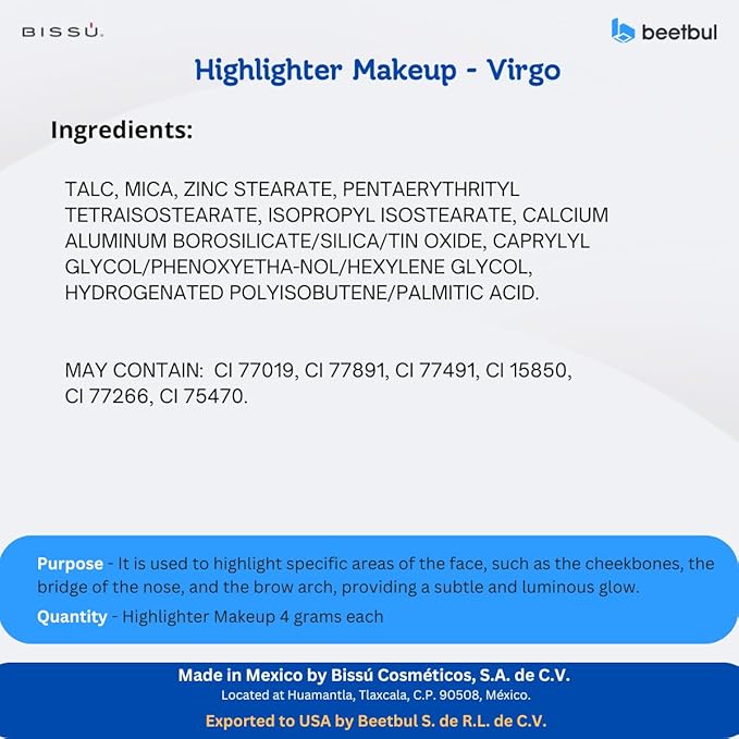 Bissú Powder Highlighter Makeup – Lightweight, Silky Formula for Radiant Skin, Easy Application, 10 Versatile Shades (06 Virgo, 4.5 Grams)
