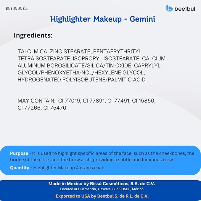 - Radiant Finish: Our Bissú Highlighter Makeup offers a silky, lightweight formula that enhances your skin's natural glow with light-reflecting pigments, ideal for a radiant complexion
