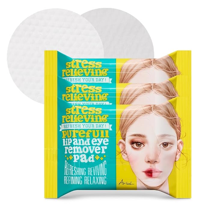 Ariul Stress Relieving Purefull Lip & Eye Remover Pads โ Gently Removes Stubborn Makeup, Hydrating & Soothing Formula, Korean Skin Care with Natural Ingredients, 30 Counts x 3 Packs