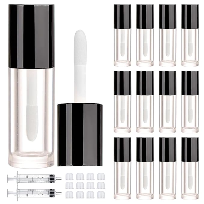 - 【PACKAGE INCLUDES】- Included 12pcs empty lip balm tubes (black cap), 2 x 5ml Syringes. This useful set is sufficient and convenient for your daily use and replacement. Each tube comes with a rubber insert to keep airs out and prevent unwanted leaking.