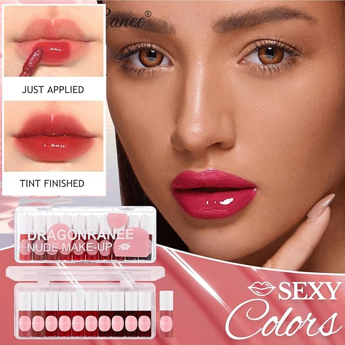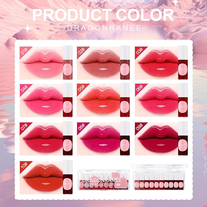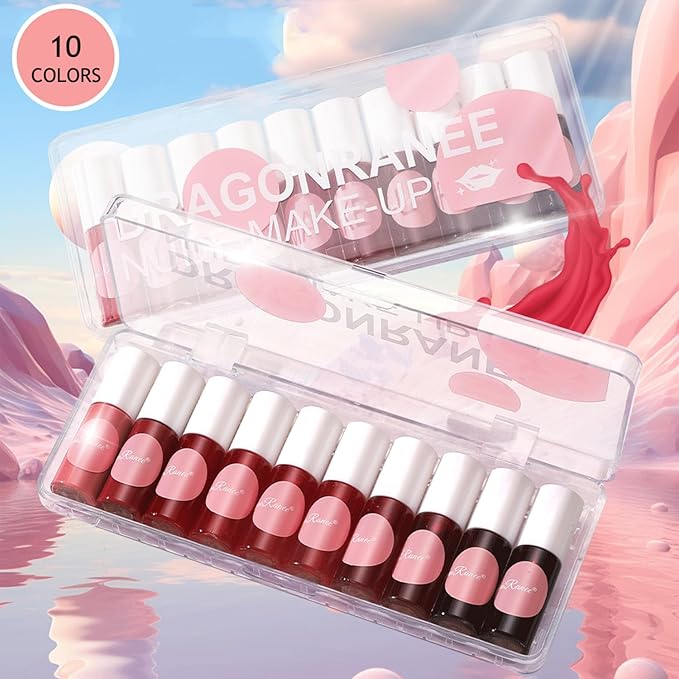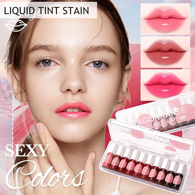 - 【10 Colors Liquid Tint】This liquid lip tint is available in 10 colors. 10 colors from dark to light, easy and comfortable daily tones, brightening skin tone, plumping and glossy lips, showing natural and charming lip color
