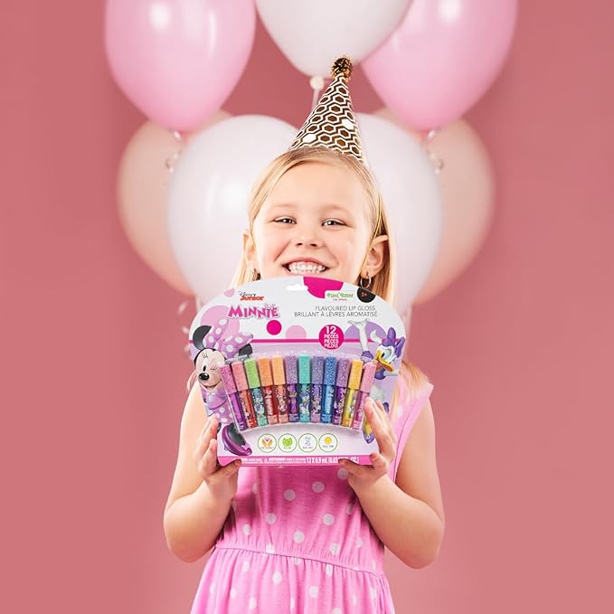 Disney Minnie Mouse 12 Piece Plant Based Lip Gloss, Girls Party Favors, First Makeup Set for Girl, Perfect for Parties, Sleepovers, and Birthday Gifts, Ages 3+, by Townley Girl