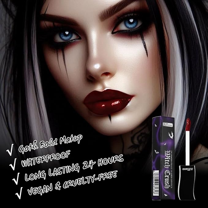 - Bold Burgundy Color for Gothic & Vampire Looks This Burgundy Gothic Lip Gloss delivers a deep, dark red color that is perfect for Gothic makeup, vampire-inspired looks, and Halloween. The highly pigmented formula ensures bold color with just one swipe, making it ideal for those who love dramatic and daring styles.