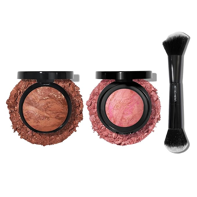 LAURA GELLER NEW YORK Baked Bronze-N-Brighten, Deep and Blush-n-Brighten, Pink Buttercream and Dual-Ended Blush and Bronzer Brush