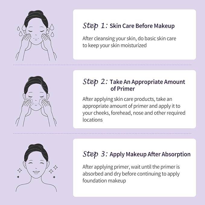 - FIRM MAKEUP: Primer can create a perfect makeup base for you. It can effectively smooth the skin so that your makeup will not fall off. Use makeup primer to prepare your skin. It can tighten your makeup while giving the skin a natural effect and a smoother complexion.