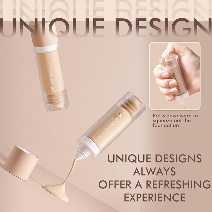 YOUNG VISION Water-Based Liquid Foundation – Full Coverage, Lightweight Makeup for Oily and Combination Skin, Natural Matte Finish, Waterproof and Sweat-Resistant,1.35 fl oz