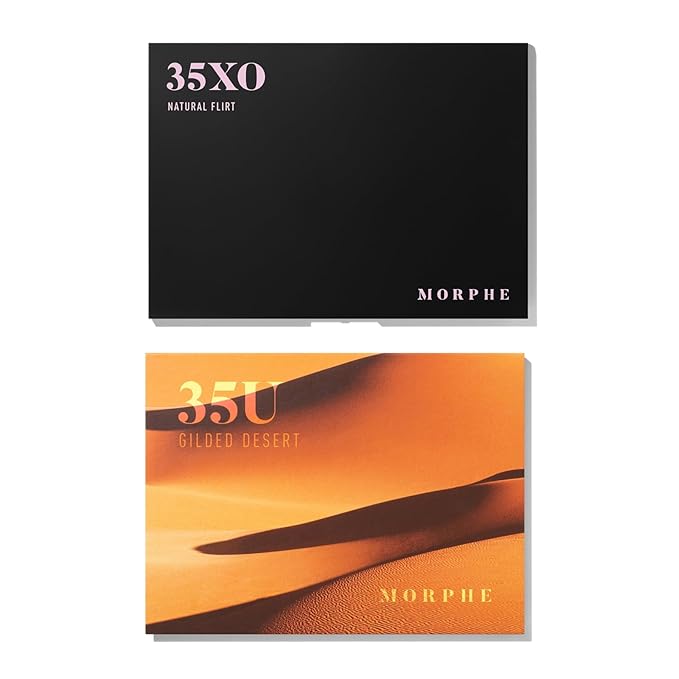 Morphe 35XO & 35U Cosmetic Palettes - Natural Flirt and Gilded Desert Eyeshadows - Made to Build, Blend & Layer for Everyday, Versatile Makeup Looks - (2 Count, 1.98 oz each)