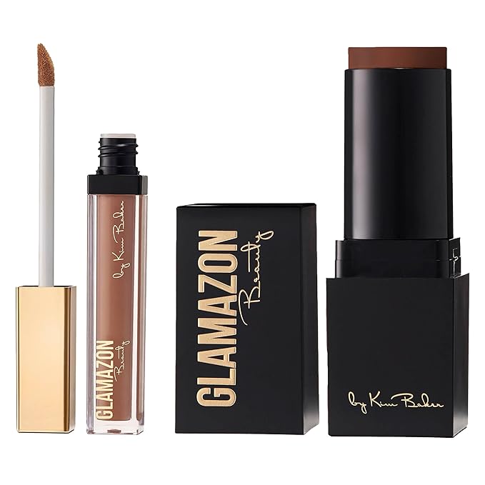 Glamazon Second to None Foundation Stick + Concealer Bundle, Miss Mocha & Caramel, Lightweight Buildable Coverage, Long-Lasting Full Coverage Brightening Concealer