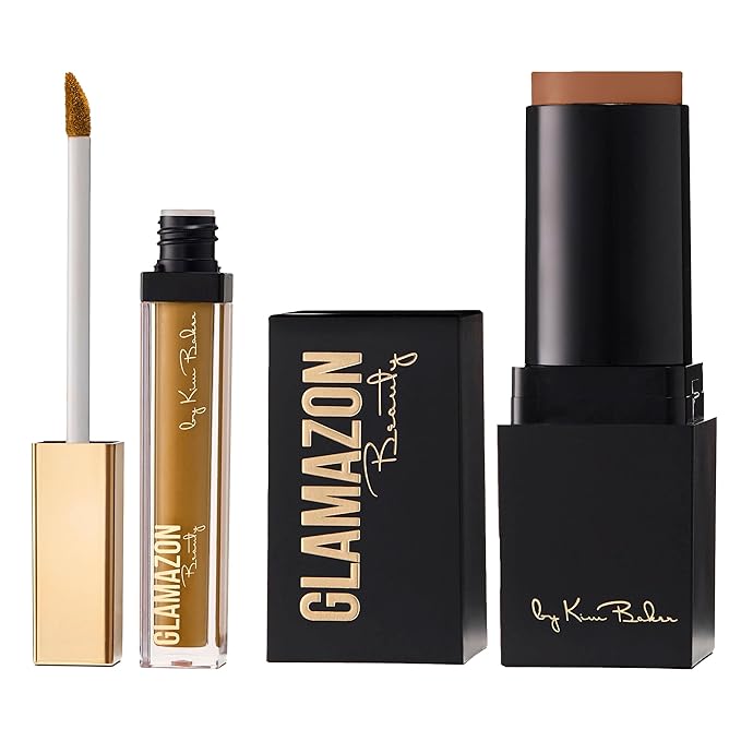 Glamazon Second to None Foundation Stick + Concealer Bundle, Bronze Sable & Honey Suckle, Lightweight Buildable Coverage, Long-Lasting Full Coverage Brightening Concealer
